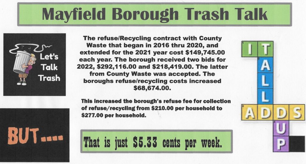 - All residents are asked to please refrain from placing garbage out on the curb prior to Sunday afternoon.